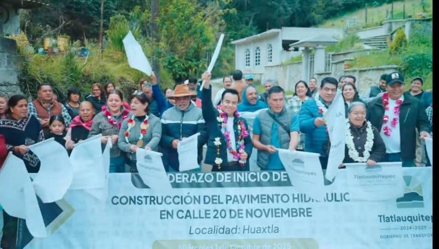 VIDEO: Juan Téllez da banderazo de inicio de obra para la rehabilitación de camino y pavimentado en dos localidades de Tlatlauquitepec