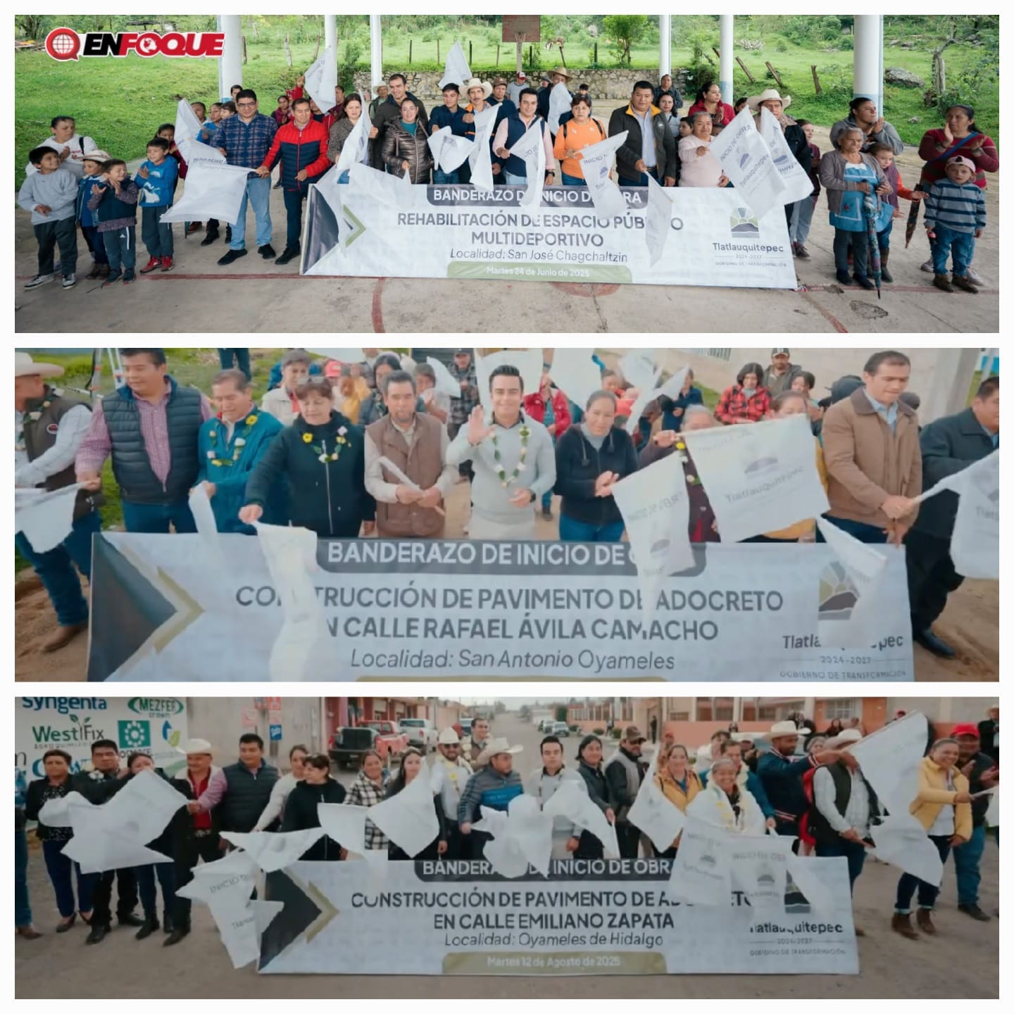 Tlatlauquitepec, Pue.- La infraestructura comunitaria es impulsada gracias al arranque de obras que buscan transformar tanto los espacios públicos como la movilidad en distintas localidades, desde la recuperación de un punto multideportivo en San José Chagchaltzín hasta la pavimentación de calles en San Antonio Oyameles y Oyameles de Hidalgo, la actual administración encabezada por Juan Manuel Téllez Salazar reafirma su compromiso con el desarrollo integral de las comunidades.