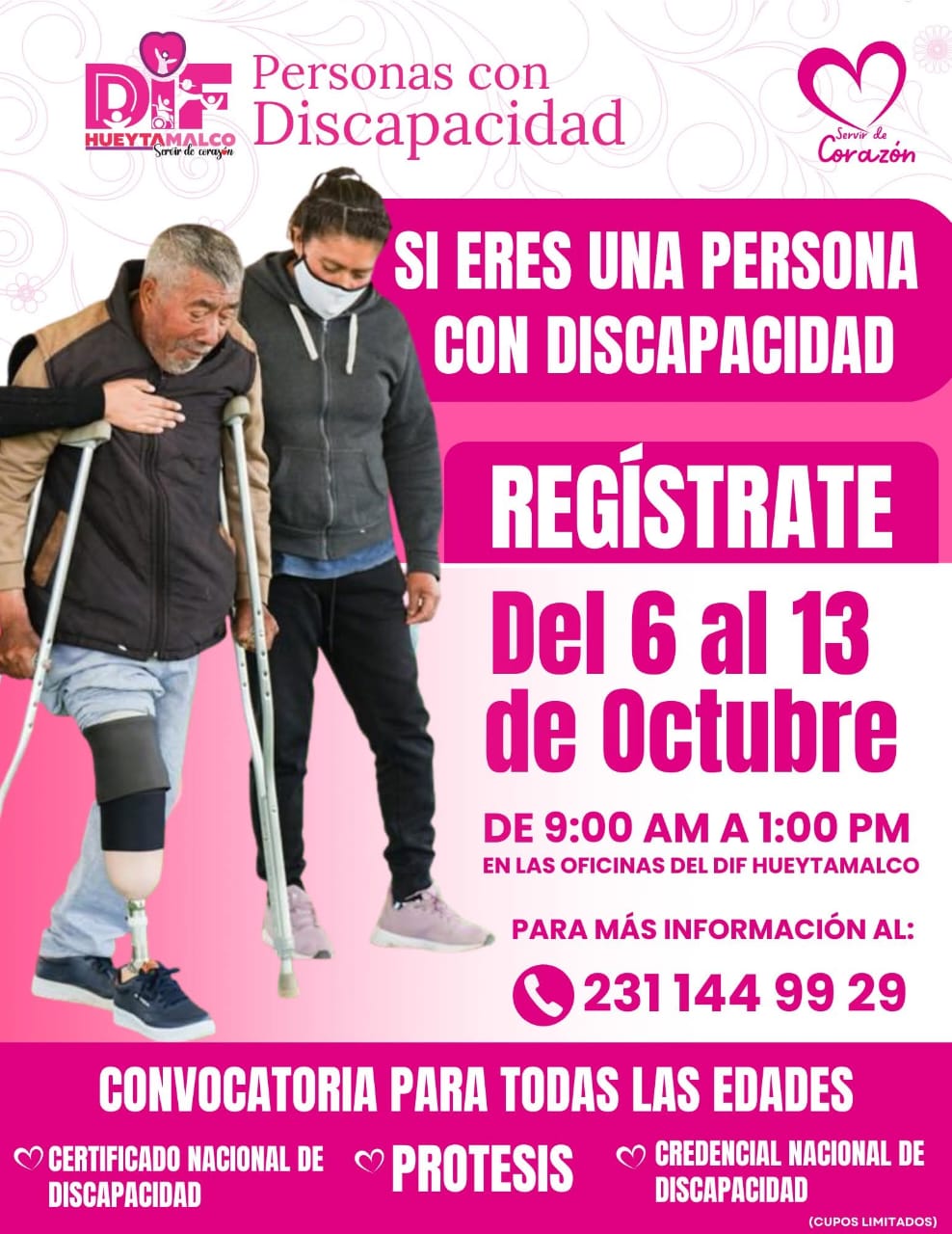 DIF de Hueytamalco abre convocatoria para personas con capacidades diferentes