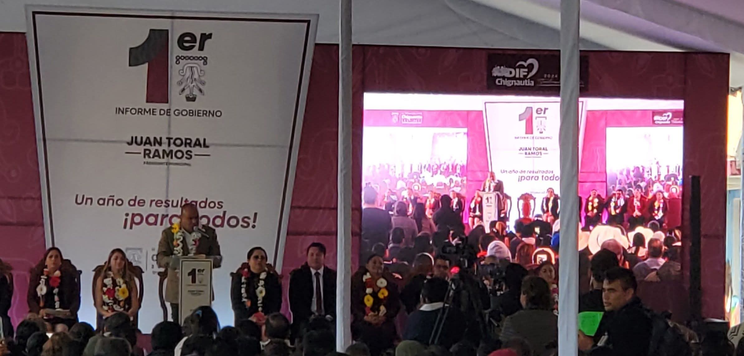Chignautla, Pue.- Con un mensaje dirigido a la ciudadanía y lleno de reconocimiento al trabajo colectivo, el edil de Chignautla Juan Toral Ramos rindió su primer informe de gobierno, donde destacó que los resultados obtenidos durante este primer año son reflejo de la unidad y la colaboración entre sociedad y autoridades. Afirmó que un informe debe ser público y transparente, porque la población tiene derecho a conocer el rumbo que lleva su municipio y los logros alcanzados gracias a su confianza y respaldo.