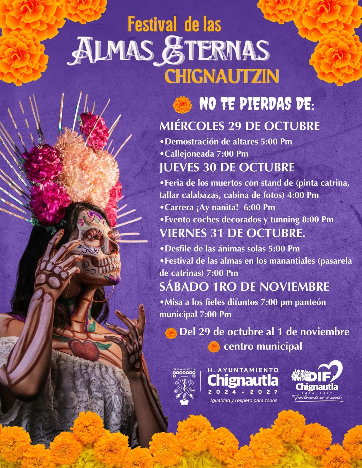 Finalmente, el sábado 1 de Noviembre se celebrará la misa en honor a los fieles difuntos en el panteón municipal a las siete de la noche, cerrando así un programa que busca rendir homenaje a las almas que regresan. Todas las actividades se desarrollarán en el centro de Chignautla, del 29 de Octubre al 1 de noviembre, en un ambiente de respeto, unión y orgullo por las raíces culturales.