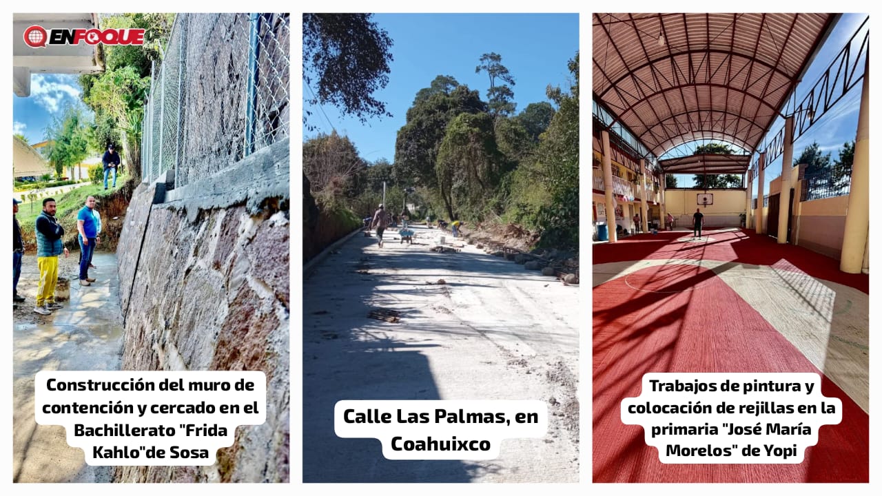 Chignautla, Pue.- Mostrando el impulso y compromiso del ayuntamiento de Chignautla por acelerar la mejora de la infraestructura social en las comunidades, se llevó a cabo la supervisión de tres acciones consideradas prioritarias que son la pavimentación de la calle Las Palmas, en Coahuixco, la construcción del muro de contención y cercado en el Bachillerato "Frida Kahlo", ubicado en Sosa y los trabajos de pintura y colocación de rejillas en la primaria "José María Morelos" de Yopi.