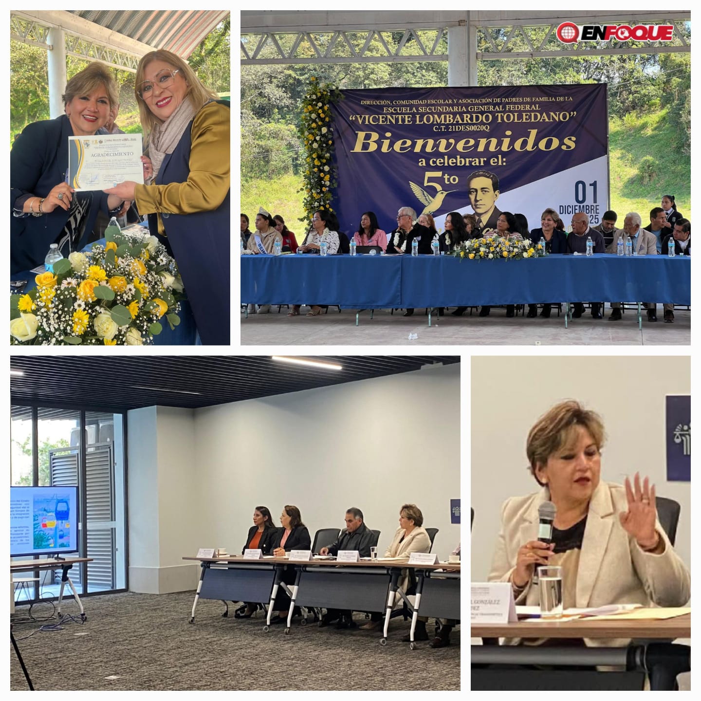 La legisladora estuvo en la conmemoración de los cien años del modelo de secundarias generales, destacando el papel que estas escuelas han tenido en el desarrollo académico y social de miles de jóvenes, destacando que en la ceremonia realizada en Teziutlán estuvo presente el secretario de Educación estatal, Manuel Viveros Narciso, así como autoridades municipales de la región y sindicales de la Sección 23, docentes y padres de familia.