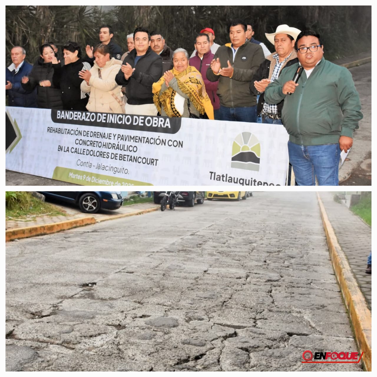 Tlatlauquitepec, Pue.- Una de las rutas más transitadas de Tlatlauquitepec por fin entró en proceso de modernización, luego de que el ayuntamiento que encabeza Juan Manuel Téllez Salazar diera el banderazo de inicio de obra de la rehabilitación de la avenida "Dolores Betancourt", vialidad que funge como enlace directo con la autopista a Puebla y que durante años acumuló reportes por deterioro.