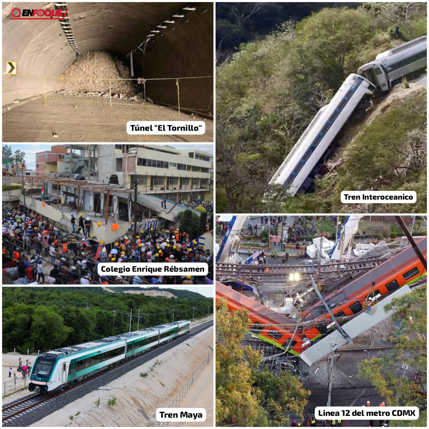 Entre las tragedias destacan los casos de "Rébsamen", Línea 12 del Metro, el "Túnel El Tornillo", el Tren Interoceánico y el Tren Maya
