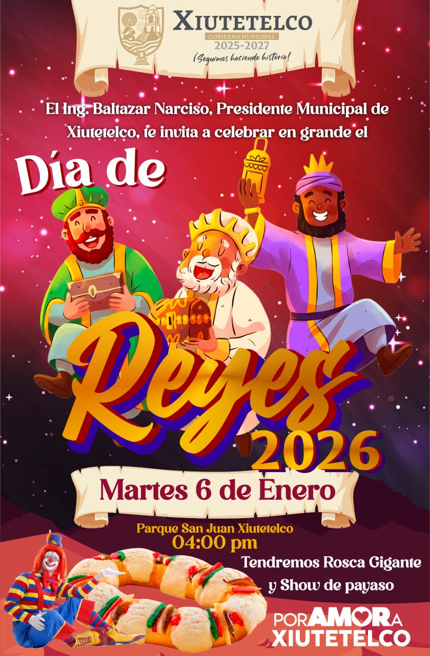 La celebración del Día de Reyes está pensada como un evento de convivencia familiar, enfocado principalmente en las infancias del municipio, se contempla la realización de actividades recreativas, la entrega de rosca gigante y un show de payaso, con el objetivo de ofrecer un espacio de esparcimiento y mantener vivas las tradiciones entre las familias que asistan a este evento.