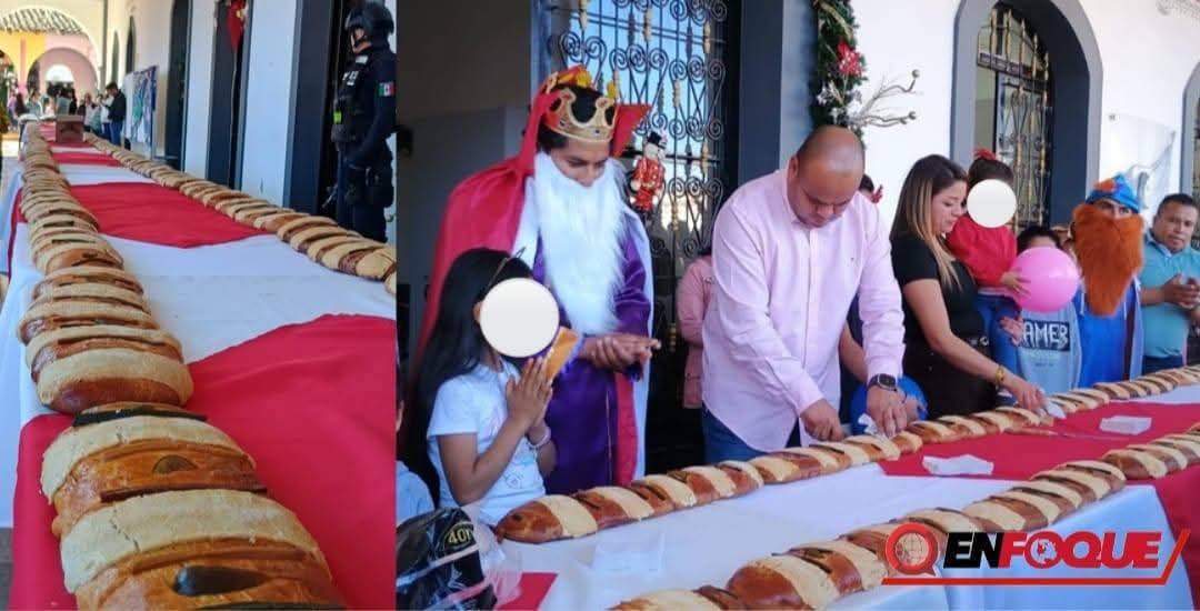 Chignautla, Pue.- Buscando dar un momento de convivencia y alegría a las familias chignautecas, el gobierno encabezado por el Presidente, Juan Toral Ramos y su esposa Monse Andrade titular del DIF, llevaron a cabo la tradicional partida de rosca de reyes este martes en los bajos del Palacio Municipal, donde hubo actividades para todos los niños y niñas con el fin de que disfrutaran este día tan especial.