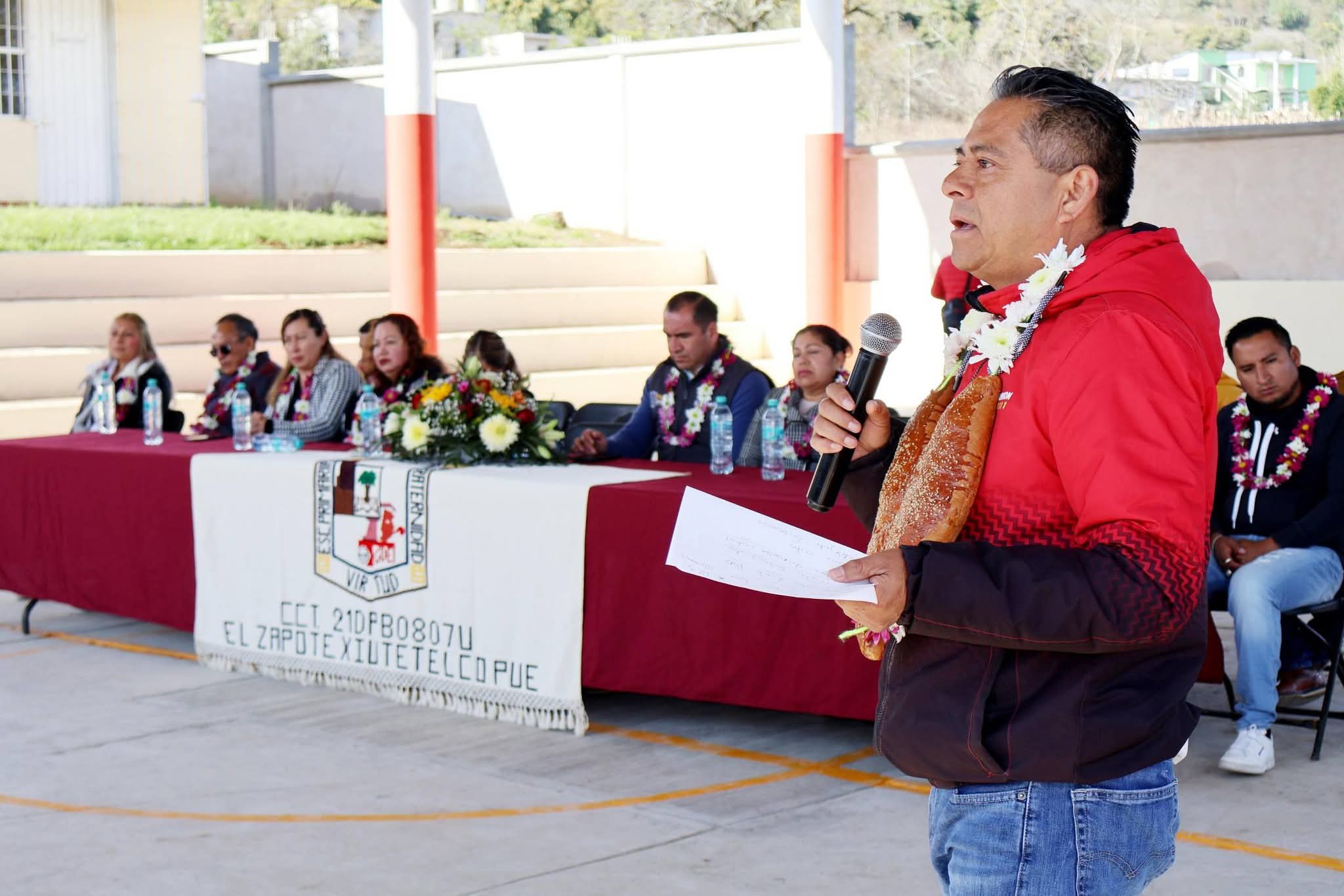 El edil también entrego otro techado escolar en la primaria bilingüe "Kalmekak" para fortalecer las condiciones de estudio en la comunidad de El Zapote con lo que se sigue fortaleciendo y mejorando la infraestructura educativa. Aqui Baltazar Narciso Baltazar entregó la obra que busca ofrecer mejores condiciones para el desarrollo académico y social del alumnado. La obra permitirá a las y los estudiantes contar con un área adecuada para la realización de actividades escolares, cívicas, culturales y recreativas, al brindar sombra y protección ante las condiciones climáticas, lo que contribuye a un entorno más seguro y funcional dentro de la institución.