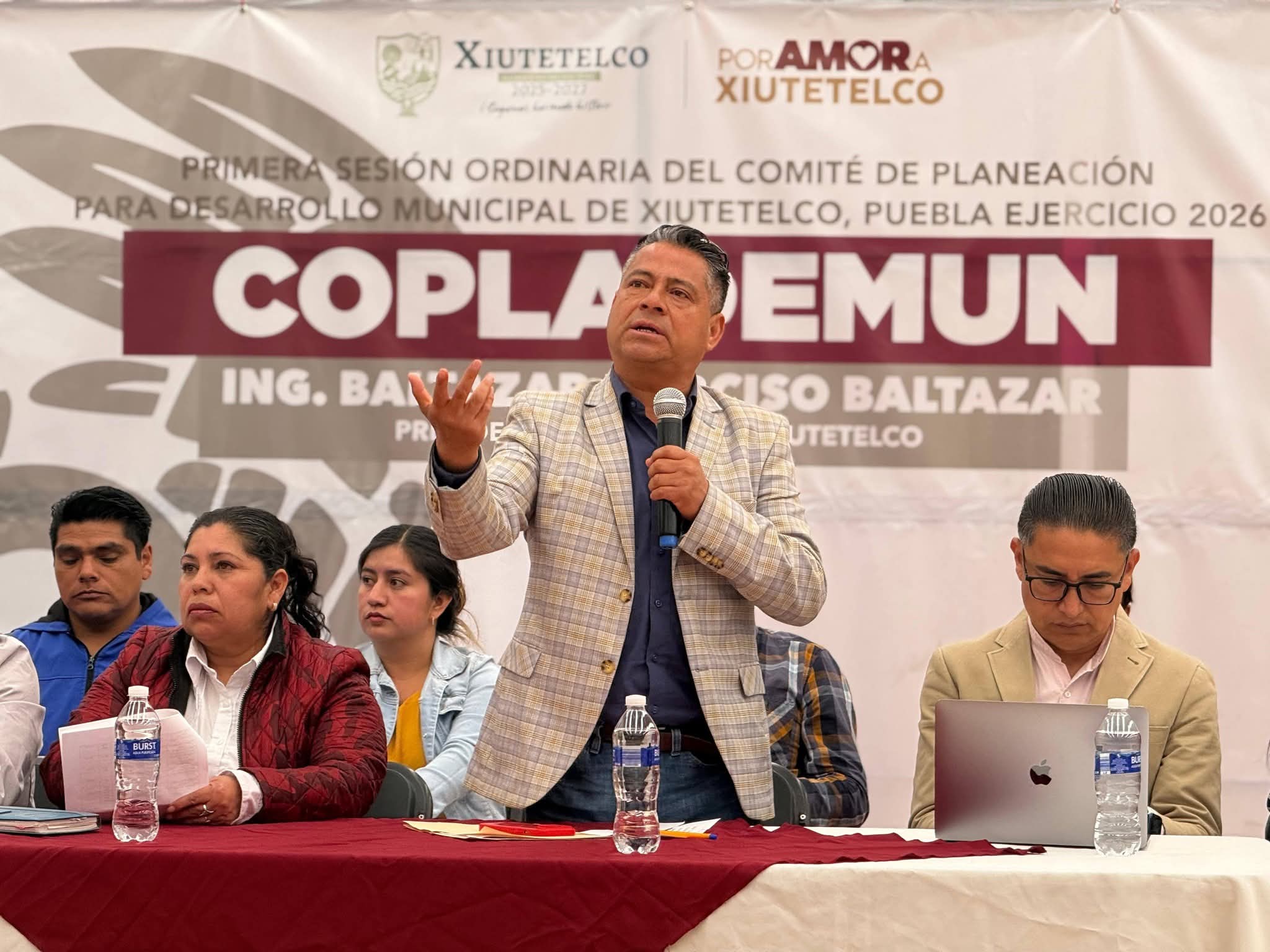 Xiutetelco, Pue.- Al encabezar la reunión del Comité de Planeación para el Desarrollo Municipal (COPLADEMUN) el Presidente Municipal de Xiutetelco, Baltazar Narciso Baltazar, reitero que la participación social es eje fundamental de su administración, por lo que este, dijo, es un espacio estratégico donde se dieron a conocer a inspectores de las distintas comunidades las obras prioritarias que se ejecutarán en beneficio de la ciudadanía este 2026.