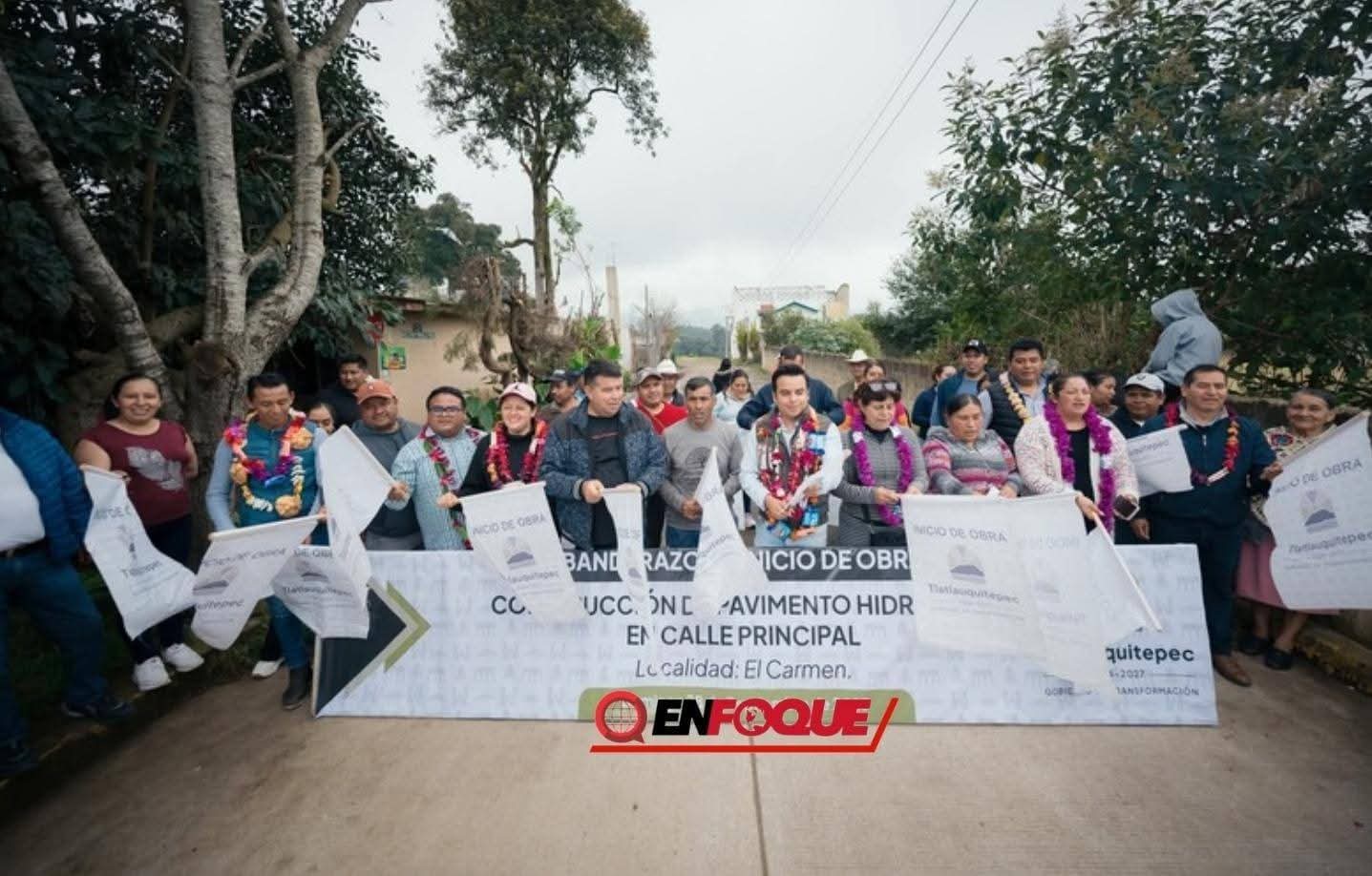 Tlatlauquitepec, Pue.- El Presidente Municipal de Tlatlauquitepec, Juan Manuel Téllez Salazar, encabezó el banderazo de inicio de obra para la pavimentación con concreto hidráulico en la calle "Vicente Suárez", en la localidad de El Carmen Ilita, proyecto que buscará mejorar las condiciones de seguridad y movilidad para los habitantes de la zona, acción con la que reafirmando su compromiso con el desarrollo de las comunidades y el mejoramiento de la infraestructura vial.