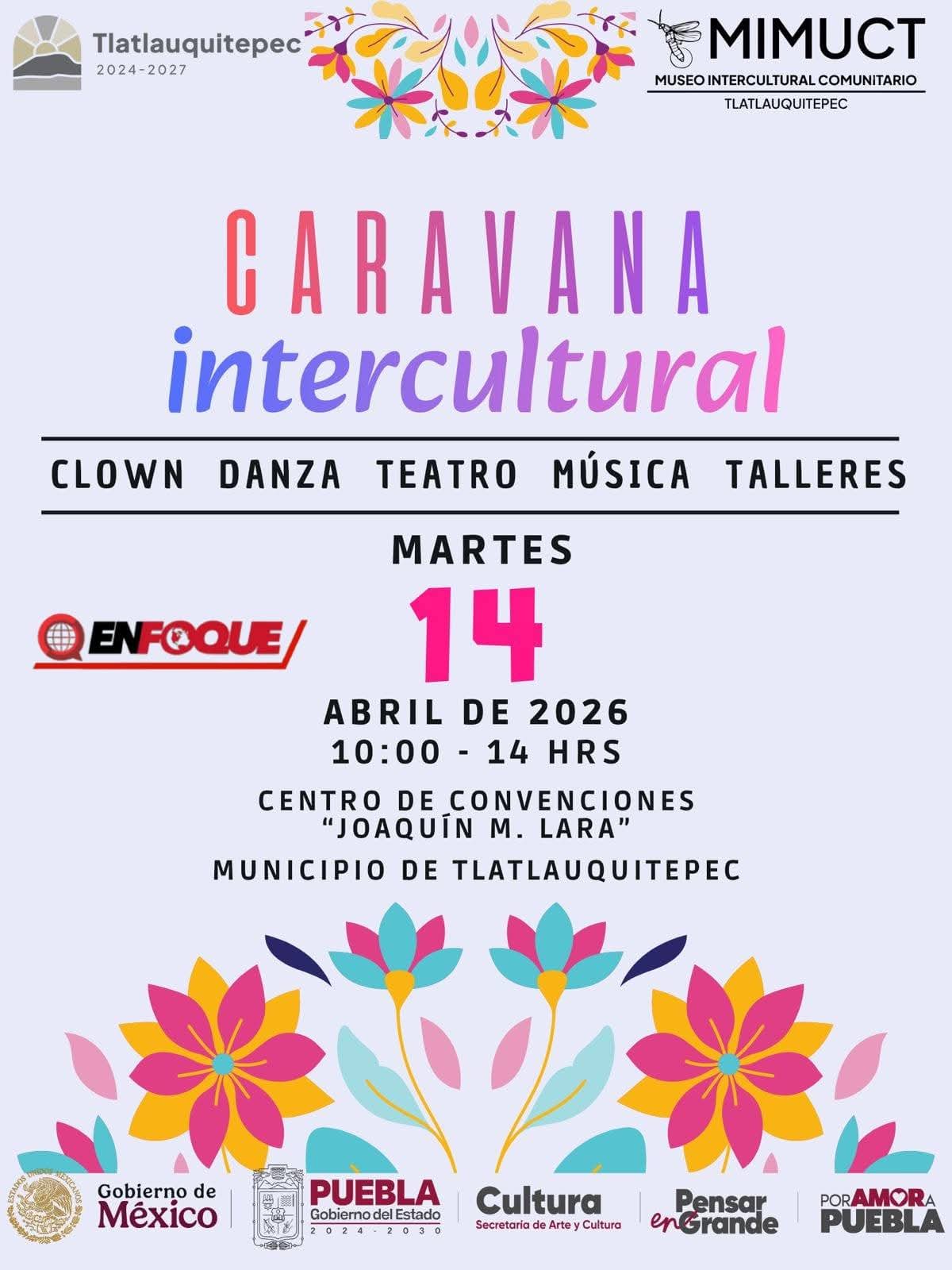 Tlatlauquitepec, Pue.- Con el objetivo de fortalecer la identidad cultural y promover la convivencia entre las familias, el Gobierno de Tlatlauquitepec, encabezado por el Presidente Municipal, Juan Manuel Téllez, invita a la ciudadanía del municipio y al región a participar en la "Caravana Intercultural", un evento que reunirá diversas expresiones artísticas y tradiciones en un solo espacio.