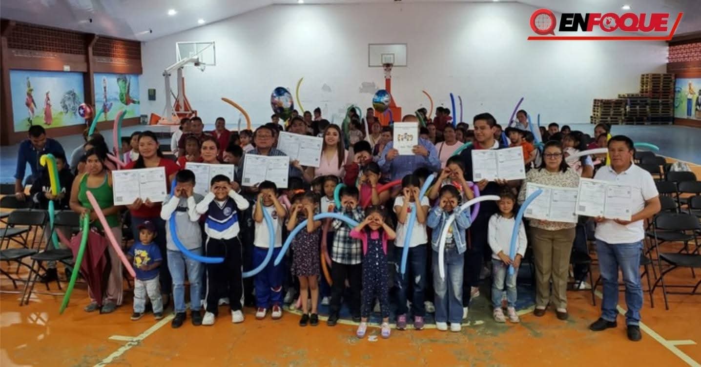 Chignautla, Pue.- Con el objetivo de garantizar el derecho a la identidad y brindar certeza jurídica a la niñez de Chignautla, el DIF Municipal llevó a cabo la entrega de cien actas de nacimiento con CURP actualizada a niñas y niños de entre 3 y 12 años de edad que por algun problema o falta de recursos, carecían de este importante documento.