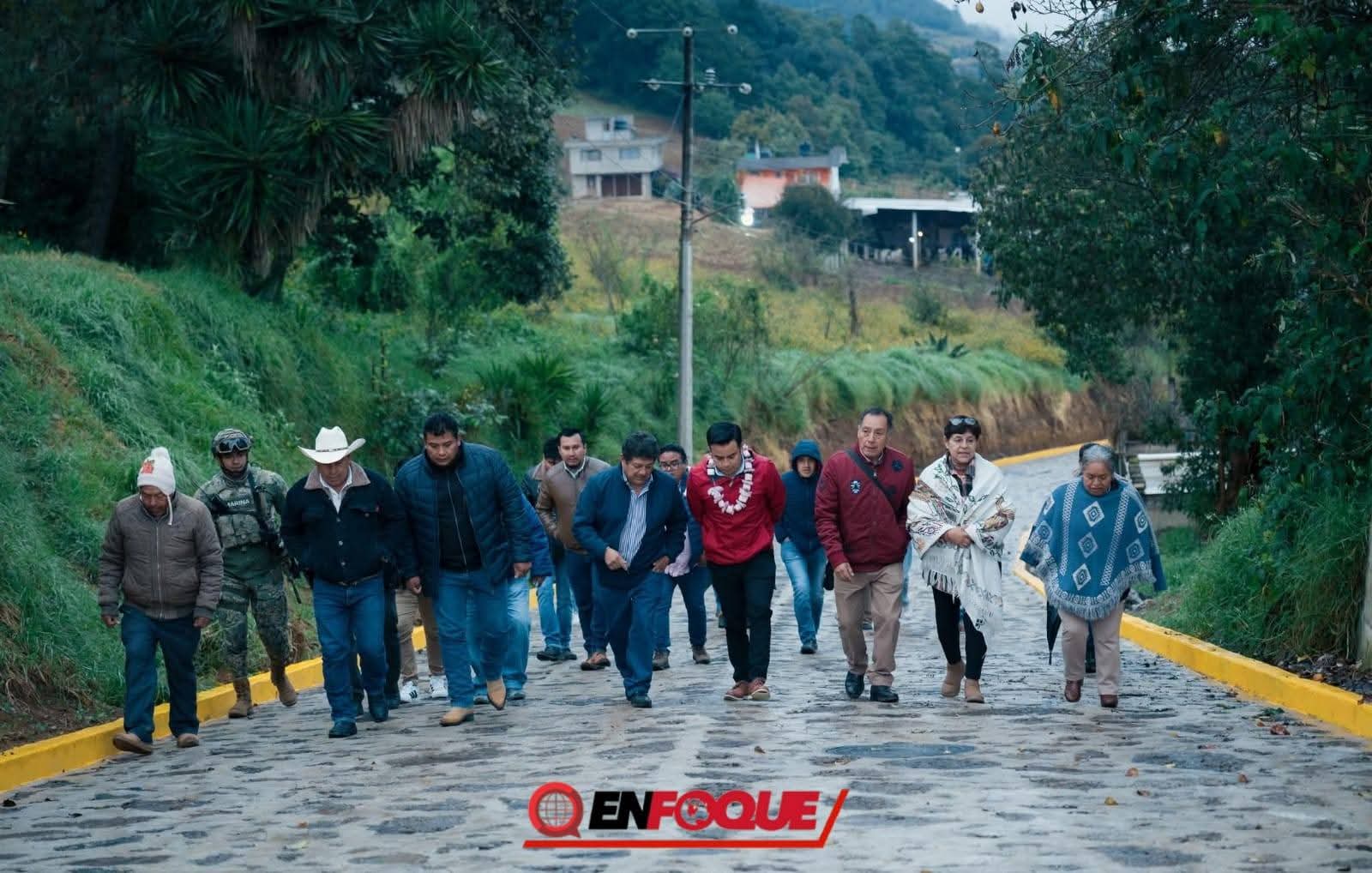 Juan Téllez trabaja en la mejora de caminos y vialidades e inaugura empedrado en la localidad de Tatauzoquico