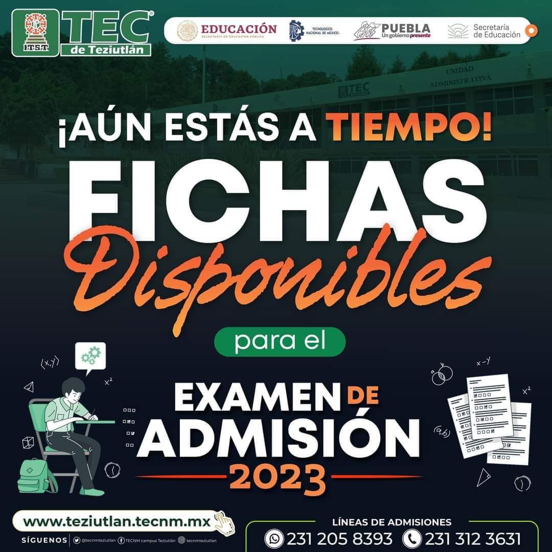 Bajo este esquema, es como el Instituto Tecnológico Superior de Teziutlán recibirá a quienes están por ingresar al Nivel Superior, siendo el Examen de admisión, el instrumento de evaluación académica para hacerlo.