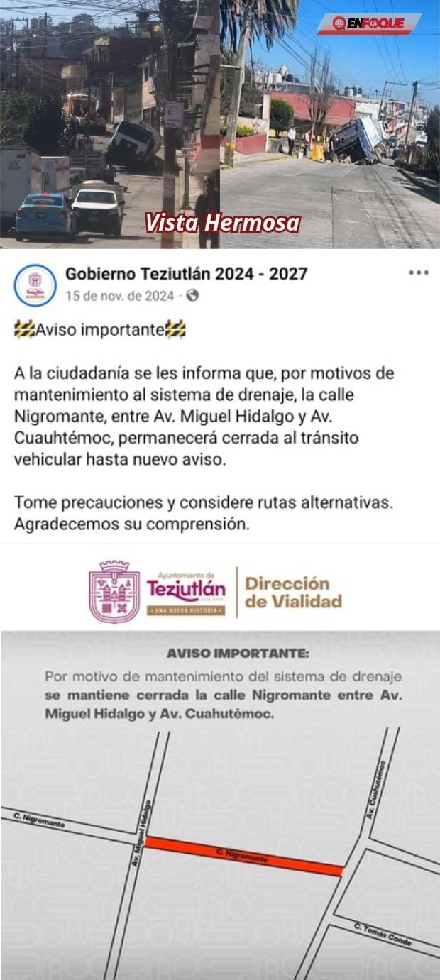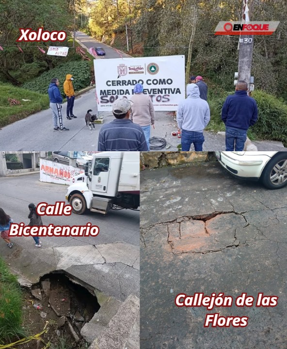 Cabe señalar que el pasado 30 de Diciembre un camión de basura cayó a un socavón ubicado en la calle principal de la colonia Vista Hermosa resultando un trabajador de Limpia Pública lesionado y afectaciones a la unidad y también hay otro registrado en la calle Bicentenario, así como en el Callejón de las Flores y en el puente de San Pedro Xoloco donde vecinos optaron por poner cable industrial para evitar que el trasporte pesado circule en dicha vialidad.