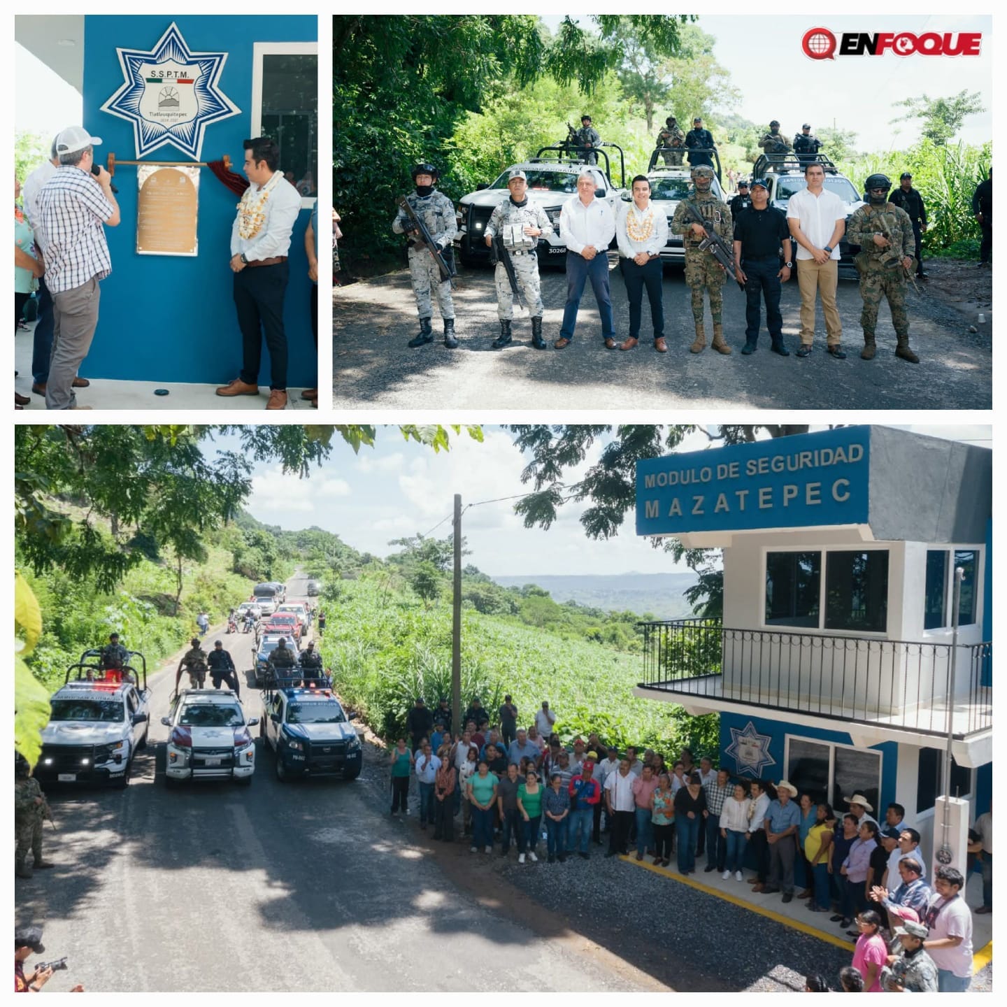 El módulo de Mazatepec está diseñado para operar las 24 horas del día, con instalaciones modernas que incluyen baños, área administrativa, habitación, mobiliario y equipo de radiocomunicación. Además, cuenta con cámaras de videovigilancia, estacionamiento con adocreto, jardinera y un muro de contención que asegura la estabilidad del terreno, destacando que la construcción se realizó sobre una superficie de 80 metros cuadrados, empleando materiales resistentes y acabados de calidad para garantizar su durabilidad.