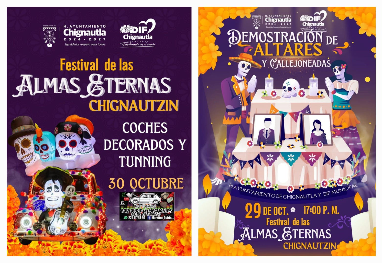 Chignautla, Pue.- La celebración del Día de Muertos se vivirá a lo grande en Chignautla con el “Festival de las Almas Eternas Chignautzin” que inicia hoy y promete ser una experiencia llena de color, música y tradición, ya que durante cuatro días, el municipio abrirá sus puertas al público en general para disfrutar de eventos dedicados a preservar las costumbres que dan identidad a estas fechas.