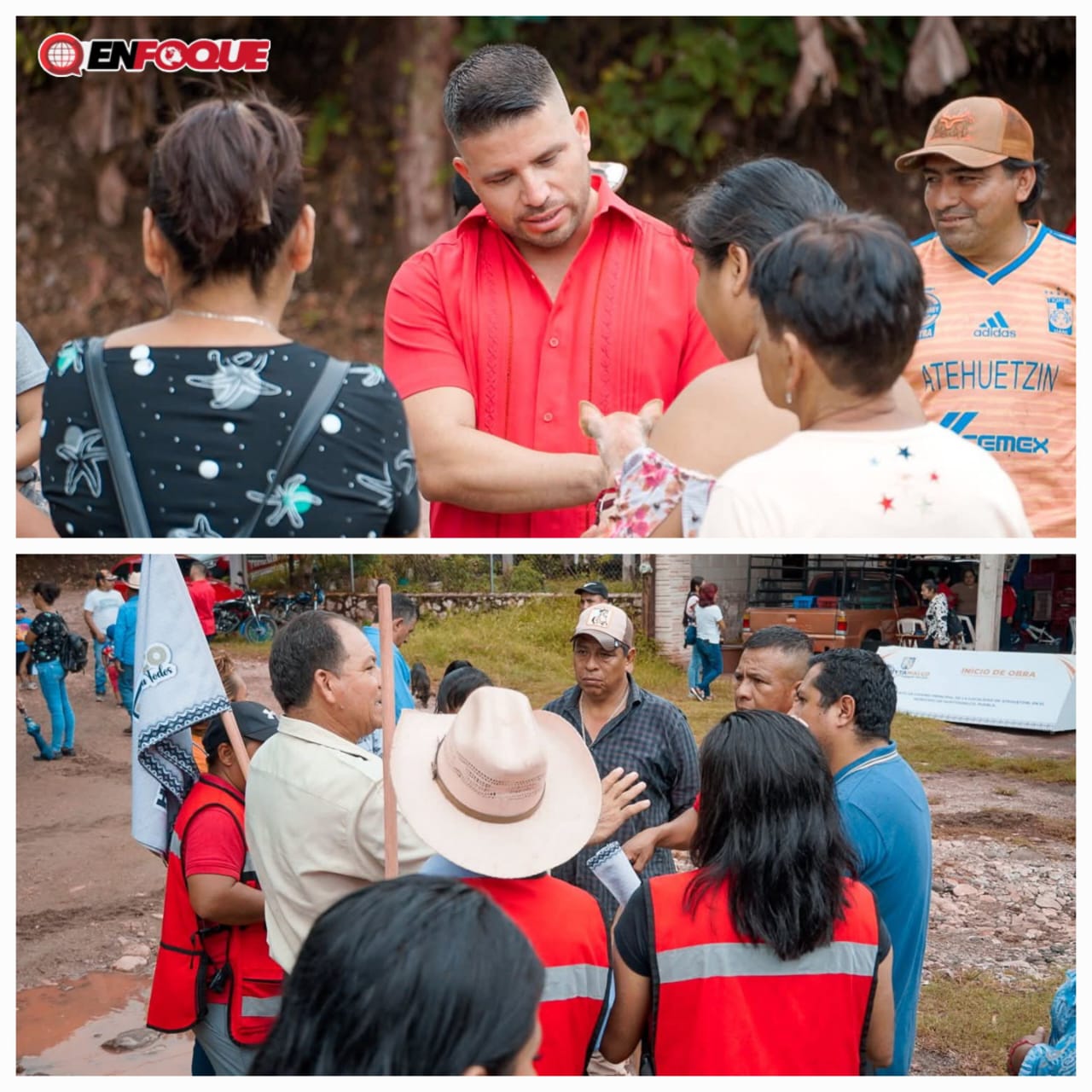 Iván Luna encabeza el banderazo de inicio de obra de la rehabilitación del camino principal de dicha comunidad