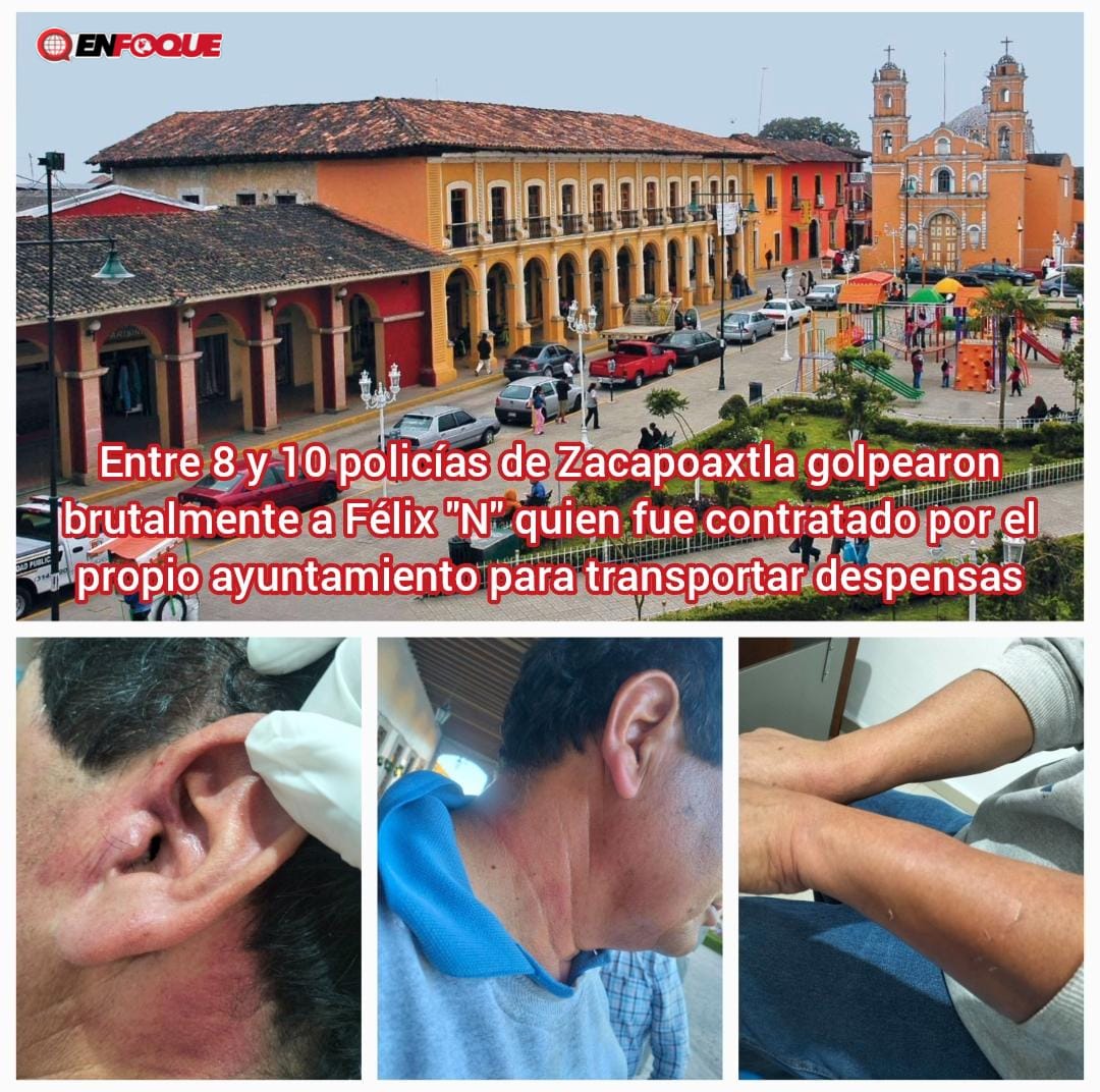 Zacapoaxtla, Pue.- Tentativa de homicidio, lesiones calificadas, tortura, abuso de autoridad, privación ilegal de la libertad y amenazas son solo algunos de los delitos que policías municipales de Zacapoaxtla cometieron contra un hombre de la tercera edad agremiado a la Confederación Autónoma de Trabajadores y Empleados de México (Catem), quien fue víctima de la falta de comunicación con la que se maneja el gobierno de Margarito Rojas Parra, ya que circulo con su camión en la zona centro a una hora indebida por orden del director de Obras Públicas, Jesús Abiel Contreras Ramírez, quien lo contrato pero al no avisar al área de Vialidad sobre el transporte de despensas ocasionó una agresión que inició con insultos por parte de una agente vial y derivó en una brutal golpiza propinada por elementos policiales, quienes incluso atentaron contra su vida al apuntarle un arma de fuego en la cabeza y ahorcarlo por lo que perdió el conocimiento por unos segundos.