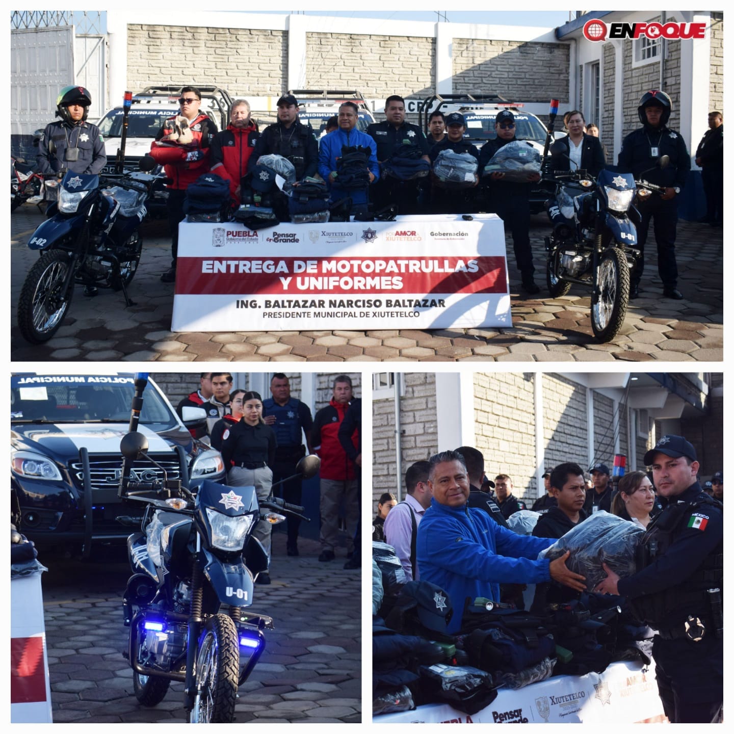 Xiutetelco, Pue.- Reforzar la presencia policial en cada comunidad de Xiutetelco llevó al ayuntamiento encabezado por Baltazar Narciso Baltazar a impulsar una estrategia que prioriza patrullajes constantes y una respuesta rápida ante cualquier reporte y para lograrlo realizó la entrega de dos nuevas motopatrullas y 26 uniformes para quienes integran la Secretaría de Seguridad Pública, Tránsito y Protección Civil, buscando mejorar tanto la movilidad como la operación diaria del personal.