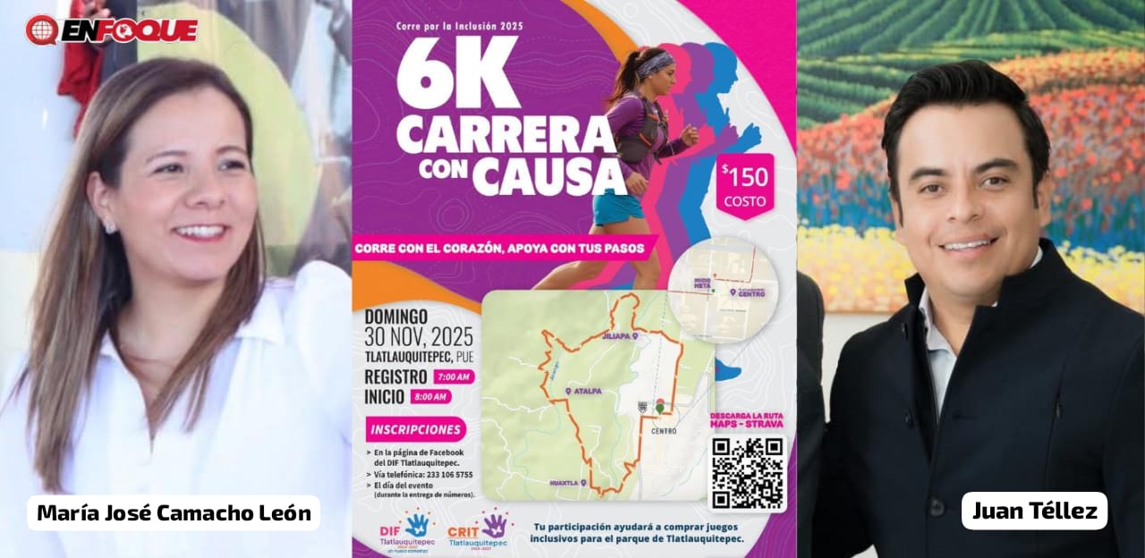 La cita es el domingo 30 de Noviembre, la carrera iniciará en el centro de Tlatlauquitepec; participa con el corazón porque cada uno de tus pasos es para brindarle mayores oportunidades de crecimiento, desarrollo e inclusión de los niños de este municipio. "Tu participación ayudará a adquirir juegos inclusivos para el parque de Tlatlauquitepec, promoviendo espacios donde todas las niñas y niños puedan disfrutar y convivir.