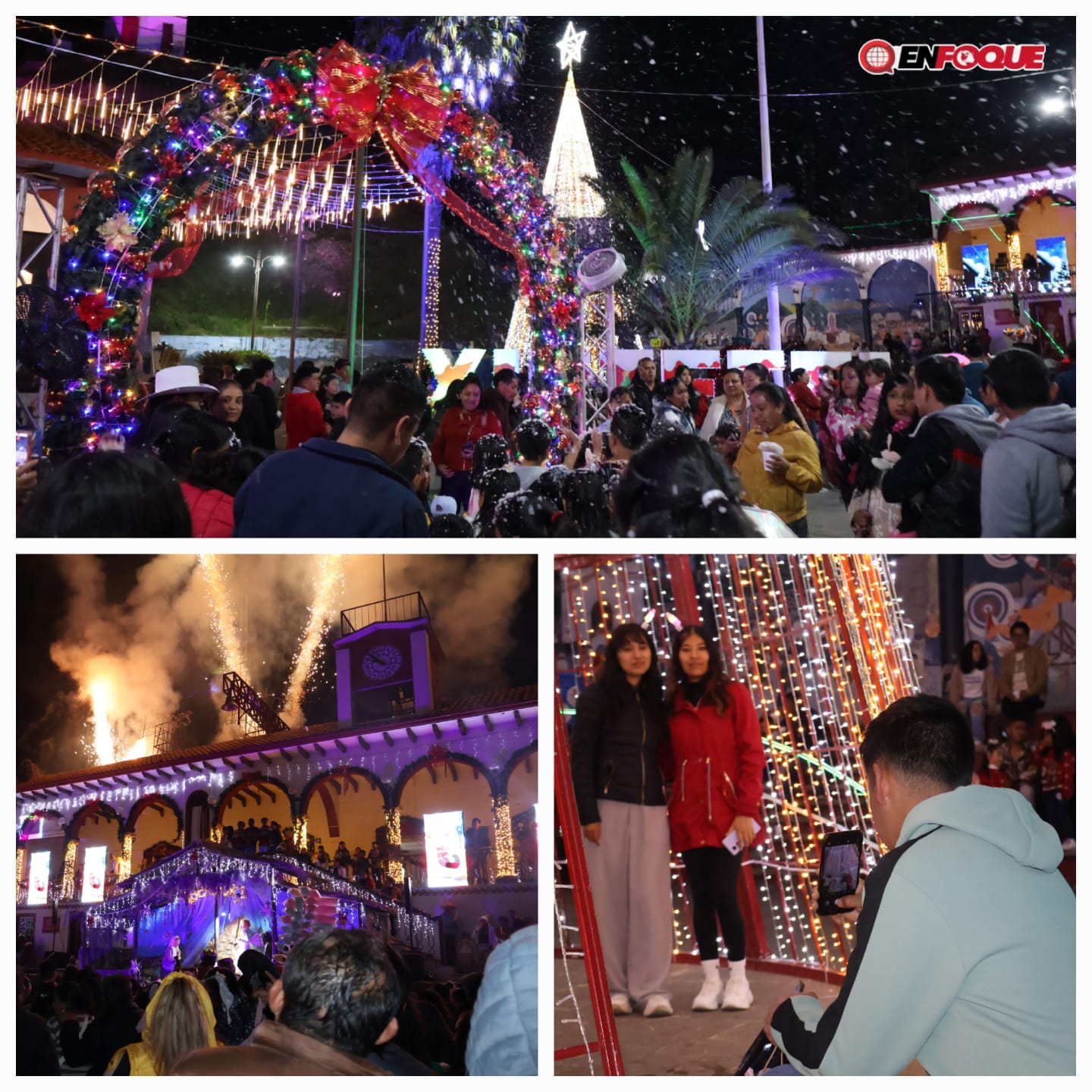 El espectáculo que acompañó la ceremonia incluyó luces, efectos láser, nieve artificial y un show de pirotecnia que iluminó el cielo nocturno, generando una atmósfera llena de emoción para niñas, niños, jóvenes y adultos; estos elementos se sumaron al momento simbólico del encendido, que fue recibido con aplausos y entusiasmo por los asistentes.