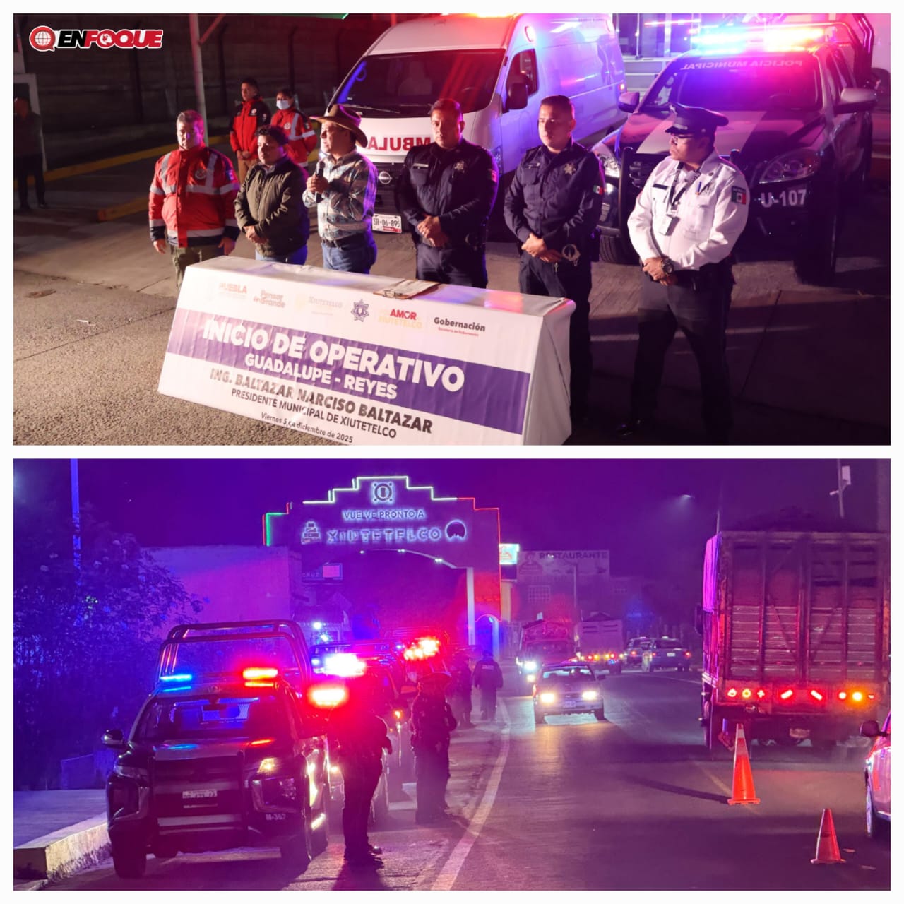 Xiutetelco, Pue.- El desarrollo seguro de la temporada decembrina está garantizado en Xiutetelco donde inició el Operativo Guadalupe–Reyes, una medida que busca dar tranquilidad tanto a las familias del municipio como a quienes llegan durante estas semanas de alta actividad religiosa y festiva. La estrategia fue presentada por el Presidente Municipal Baltazar Narciso Baltazar, como un acompañamiento directo para que la población disfrute las celebraciones con mayor confianza.