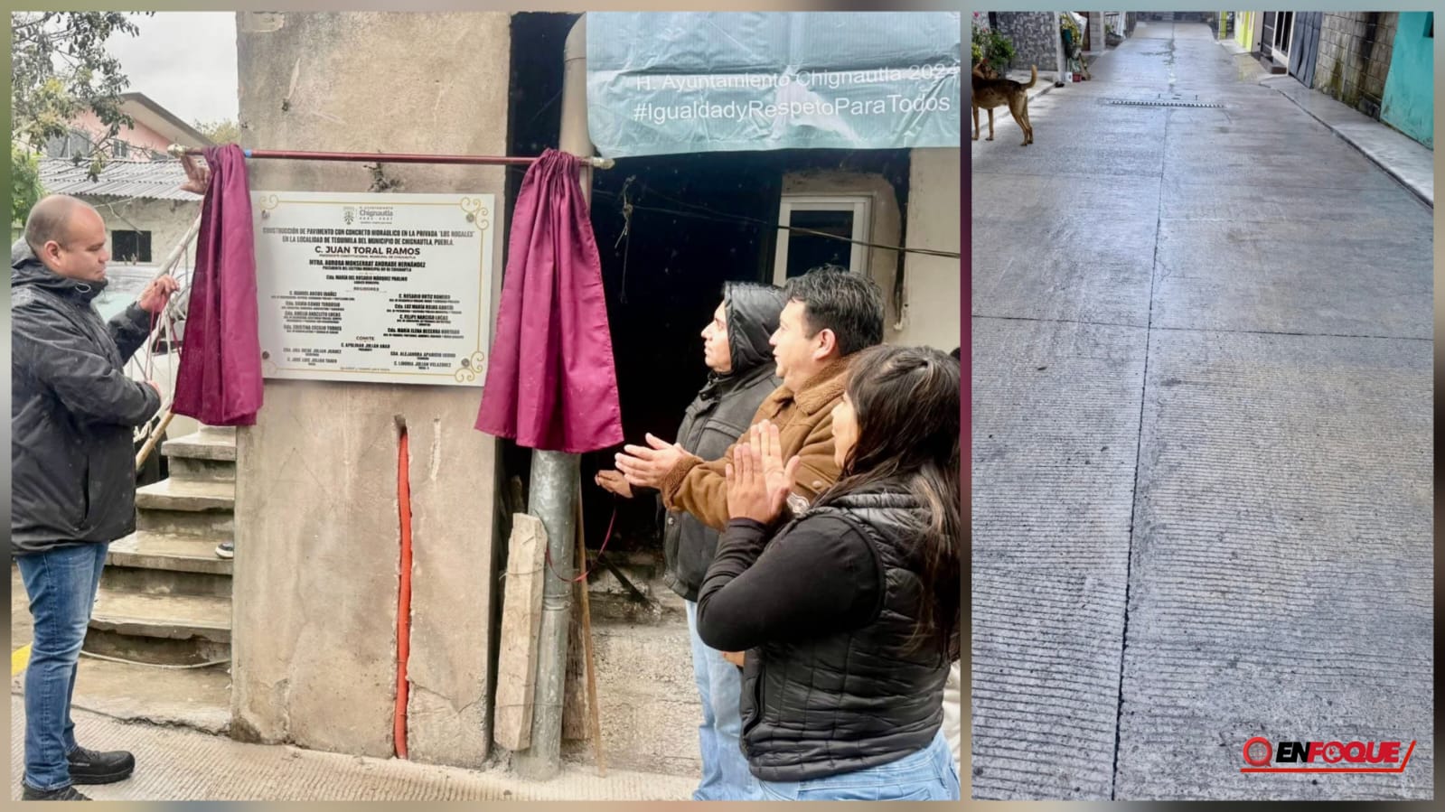 Chignautla, Pue.- Las actividades del ayuntamiento de Chignautla no se detienen pese a las condiciones climáticas y se mantiene una dinámica de trabajo permanente a lo largo de la semana como parte de los compromisos asumidos con la población, afirmó el Presidente Municipal Juan Toral Ramos, quien bajo esta premisa encabezó la inauguración de una obra de pavimentación en la privada "Los Nogales" de la comunidad de Tequimila.