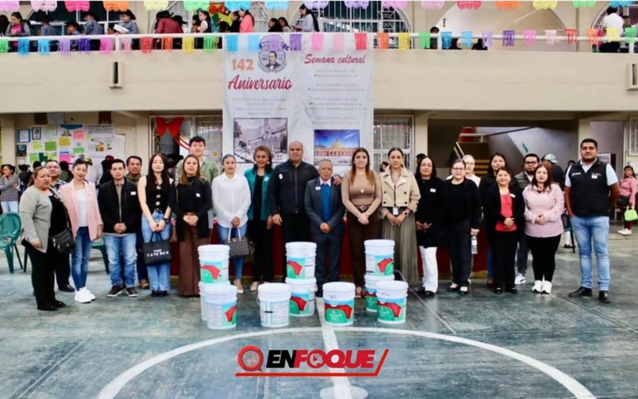 Del mismo modo, se destacó que gracias a la gestión y trabajo cercano con directivos y comités de padres de familia, se llevó a cabo la entrega de pintura para el mejoramiento de la fachada principal del plantel, reafirmando el compromiso del gobierno municipal para mejorar la infraestructura educativa en todos sus aspectos, tanto deportivo, en las instalaciones, entre otros, siempre priorizando el beneficio de los estudiantes.