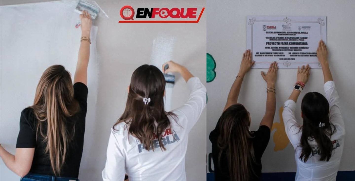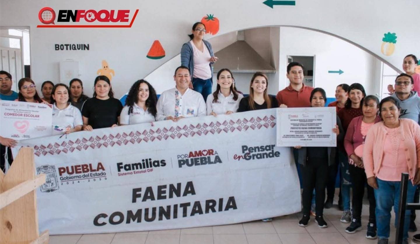 Chignautla, Pue.- Con el objetivo de fortalecer los espacios alimentarios y mejorar las condiciones en la que los menores de Chignautla se desarrollan, la presidenta del DIF, Monserrat Andrade Hernández, encabezó una faena comunitaria en la localidad de Los Humeros, donde se llevaron a cabo importantes acciones en beneficio de la comunidad escolar.